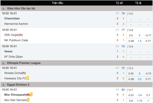 Tỷ số bóng đá trực tiếp
